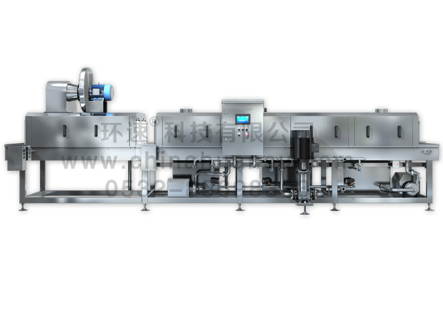 ·周轉箱清洗機主要由輸入、預洗、主清洗、漂洗、及輸出部分組成;
